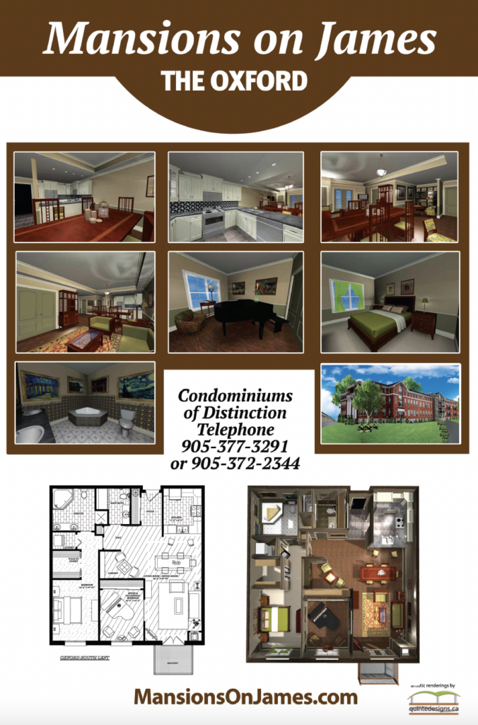 MANSIONS ON JAMES SUITES will consist mainly of 1300 -1500 square feet of accommodation with two bedrooms, two bathrooms, living room/dining area and almost all will have a balcony or garden terrace. These homes will continue the high energy efficiencies of Mansions on GEORGE. Occupancy of these MANSIONS ON JAMES Units will be for the winter of 2026.