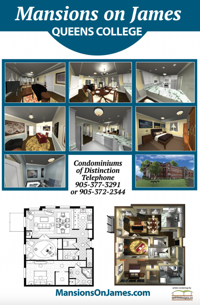 The former Thomas Gilbard school playing fields to the west of the old main school will contain an additional 36 suites. It faces onto James Street and shares the roadway system and green space with Mansions on GEORGE of the “The Mansions on George DEVELOPMENT”. We are tying in as many of the architectural features of the old school together into Mansions on James although this building will be four stories high (Five with the parking garage) it’s roofline will be similar to the Gilbard school itself. The town of Cobourg is very pro-active in the architectural features of the everlasting Victorian look of the town.